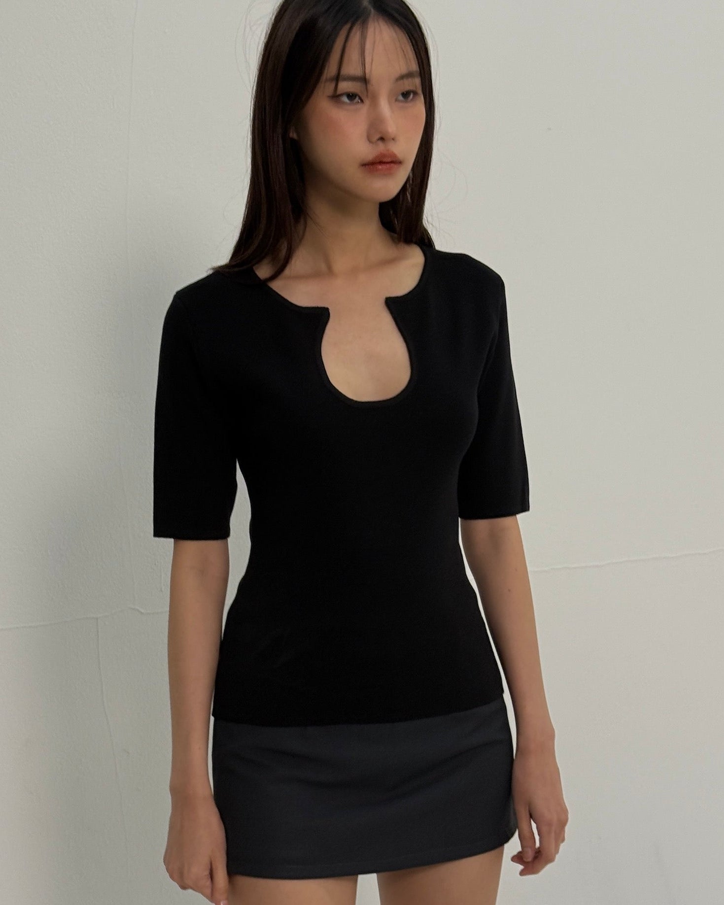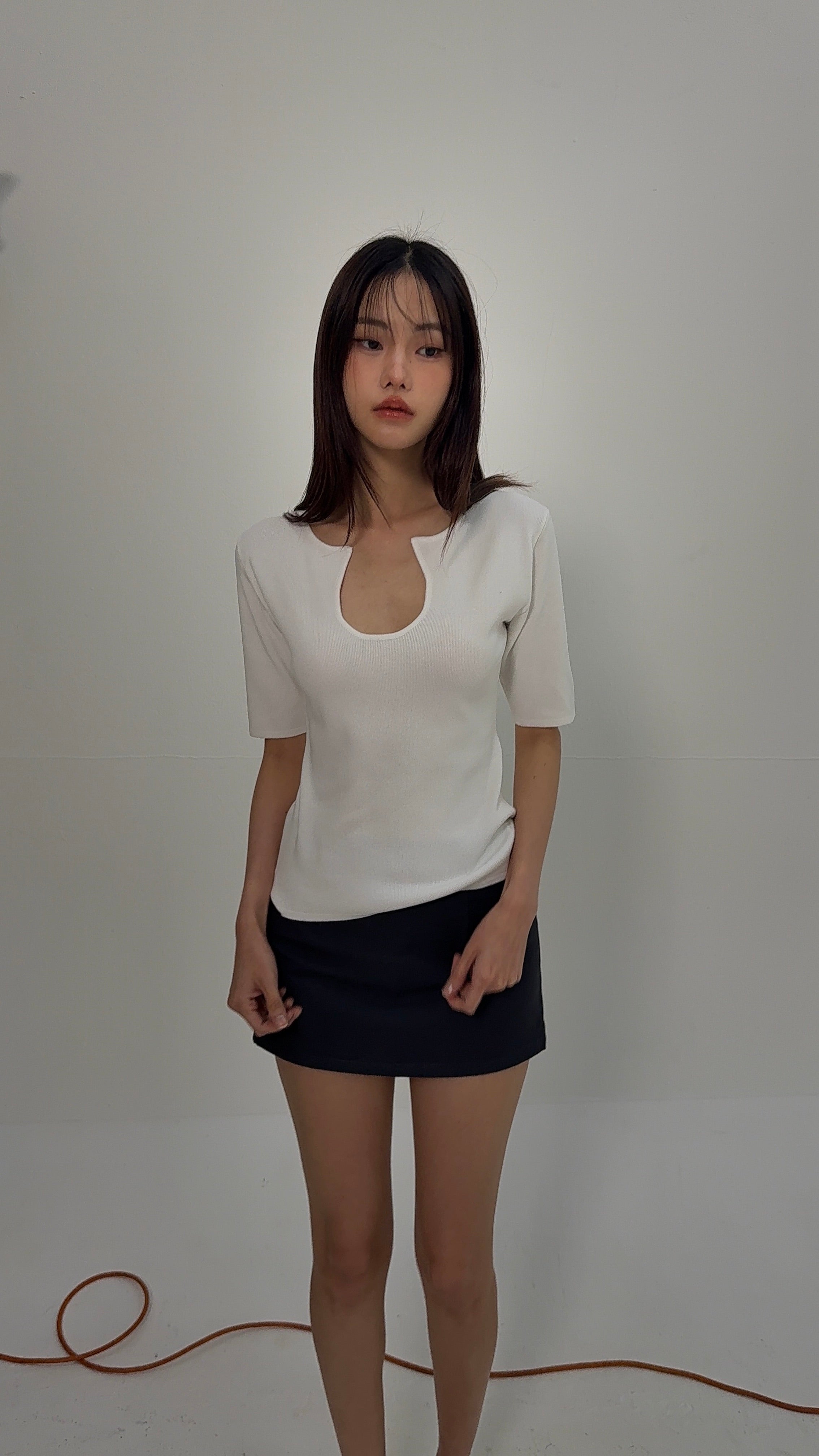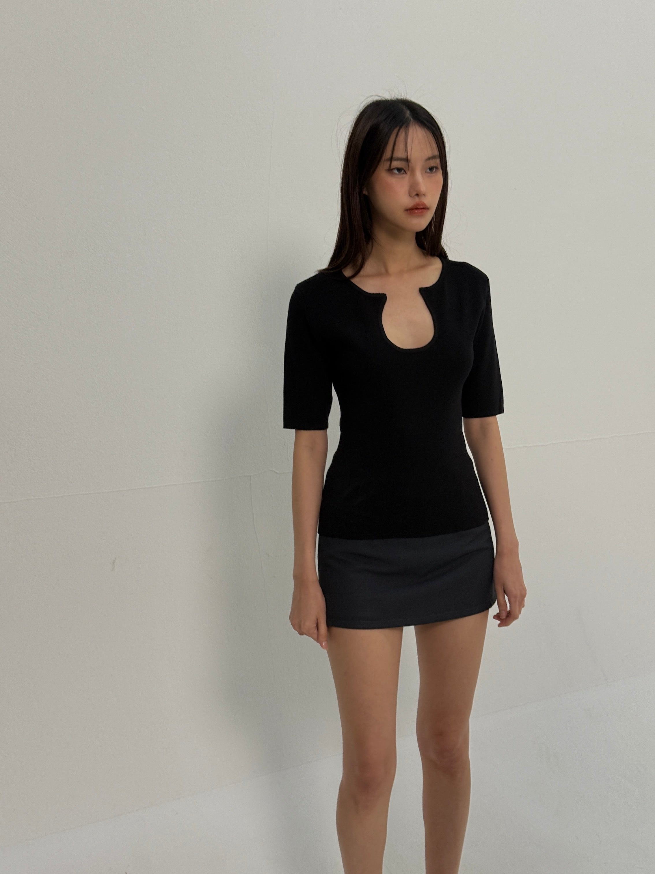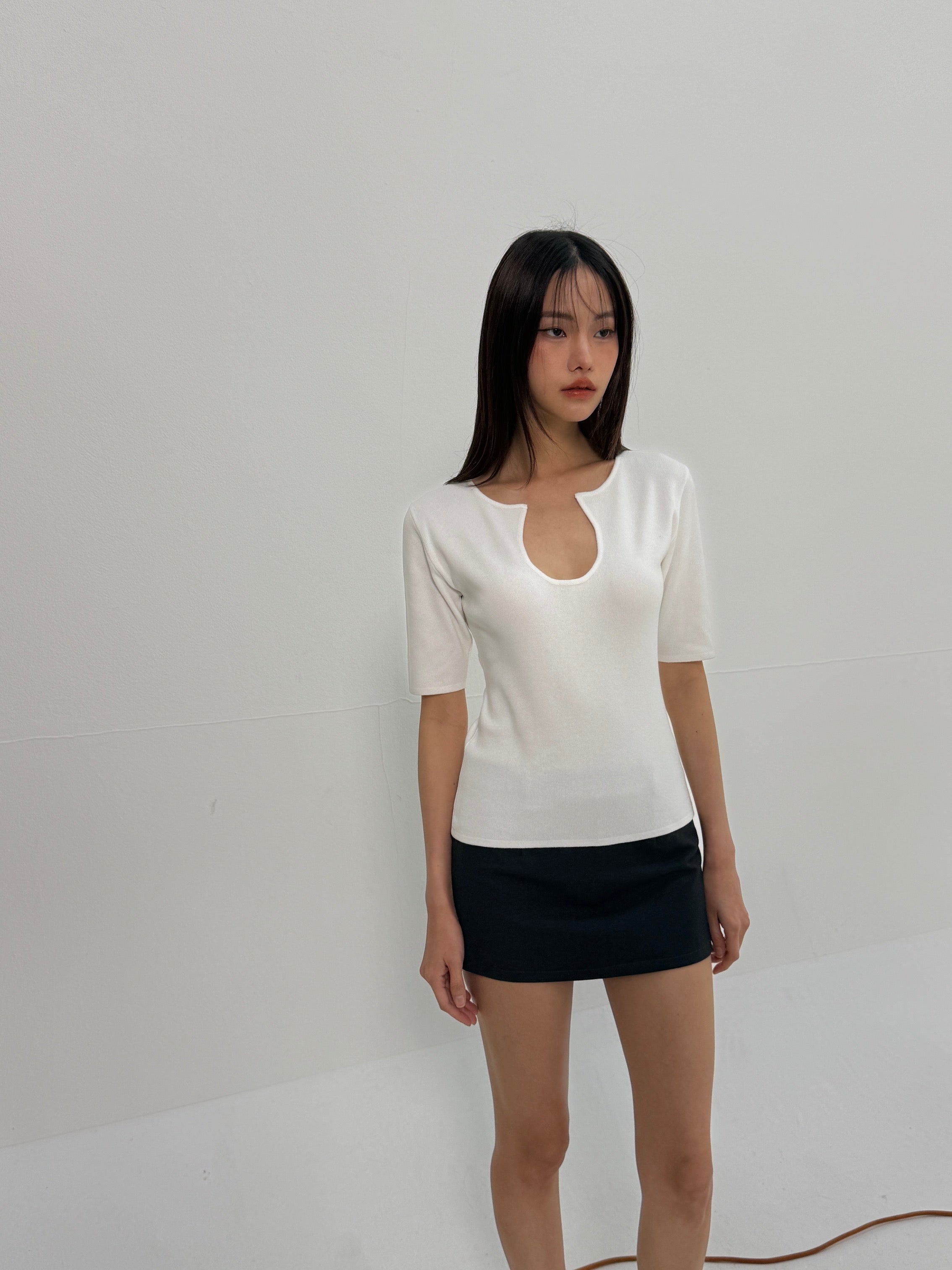 Knitted U Neck Short Sleeve Top