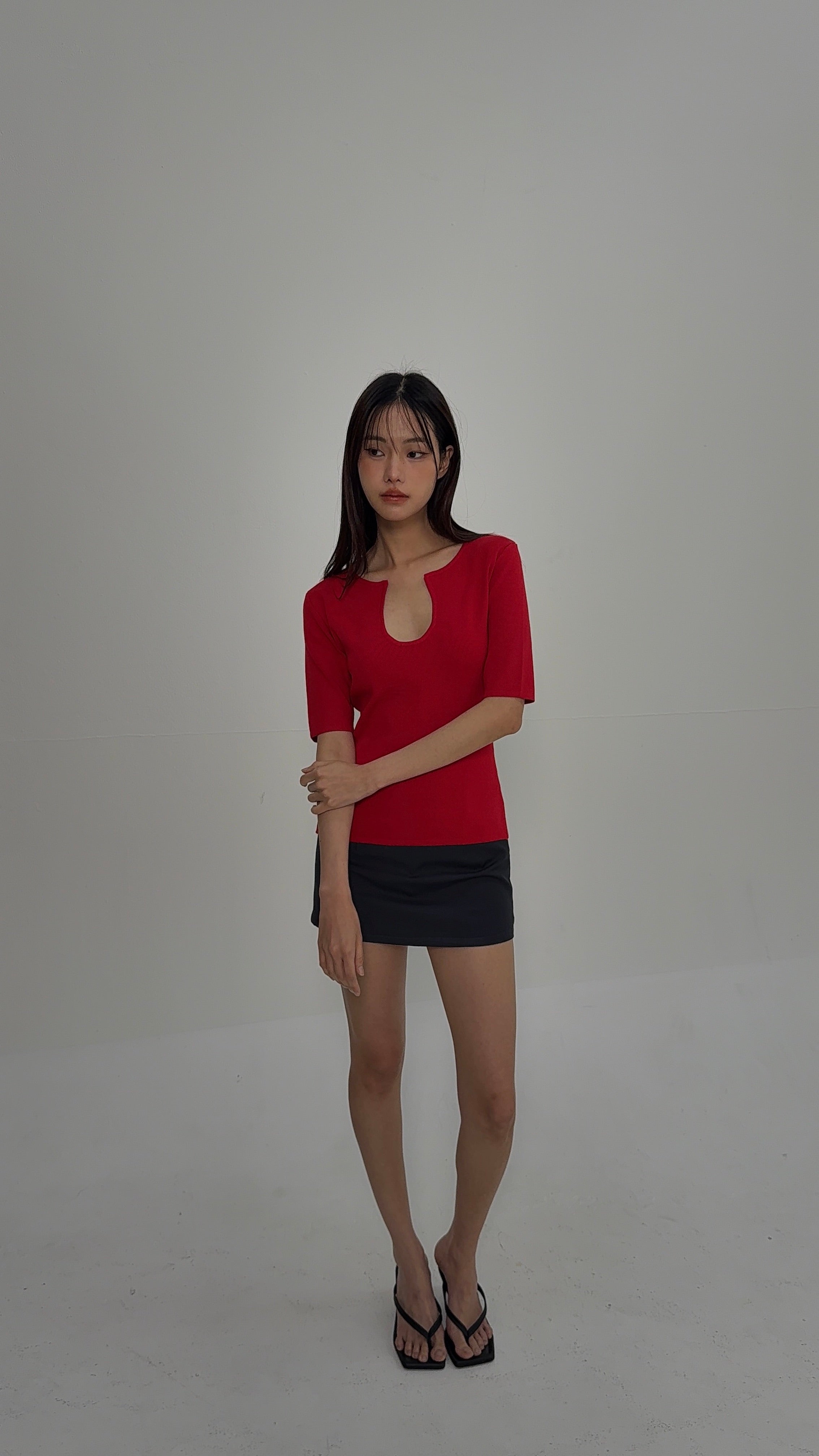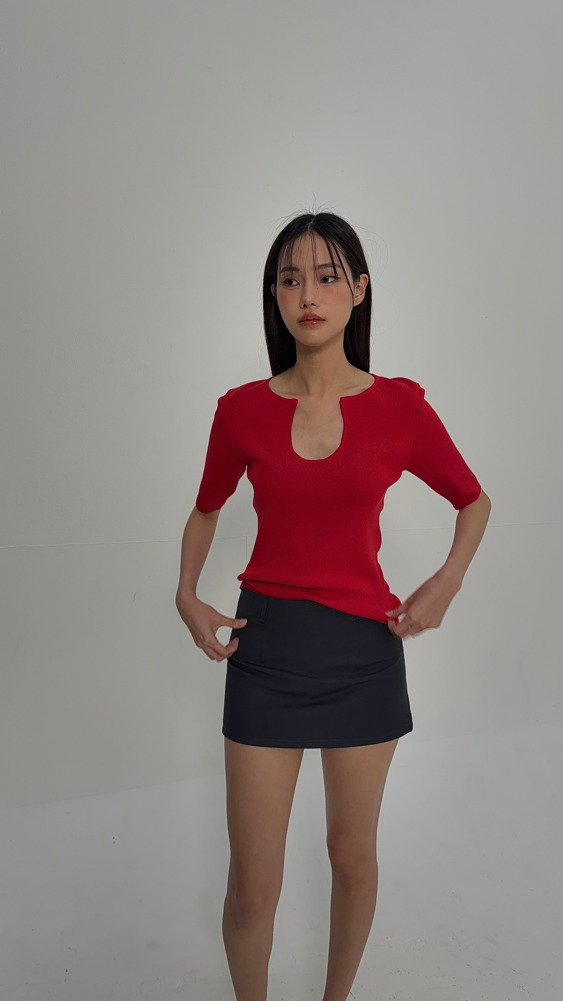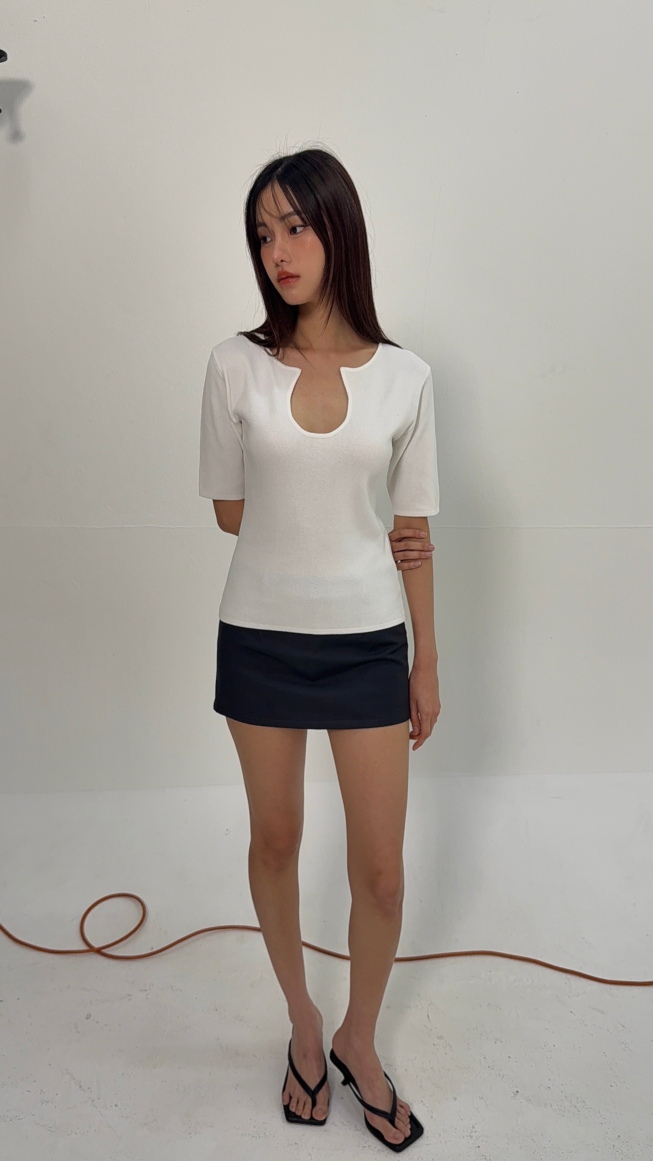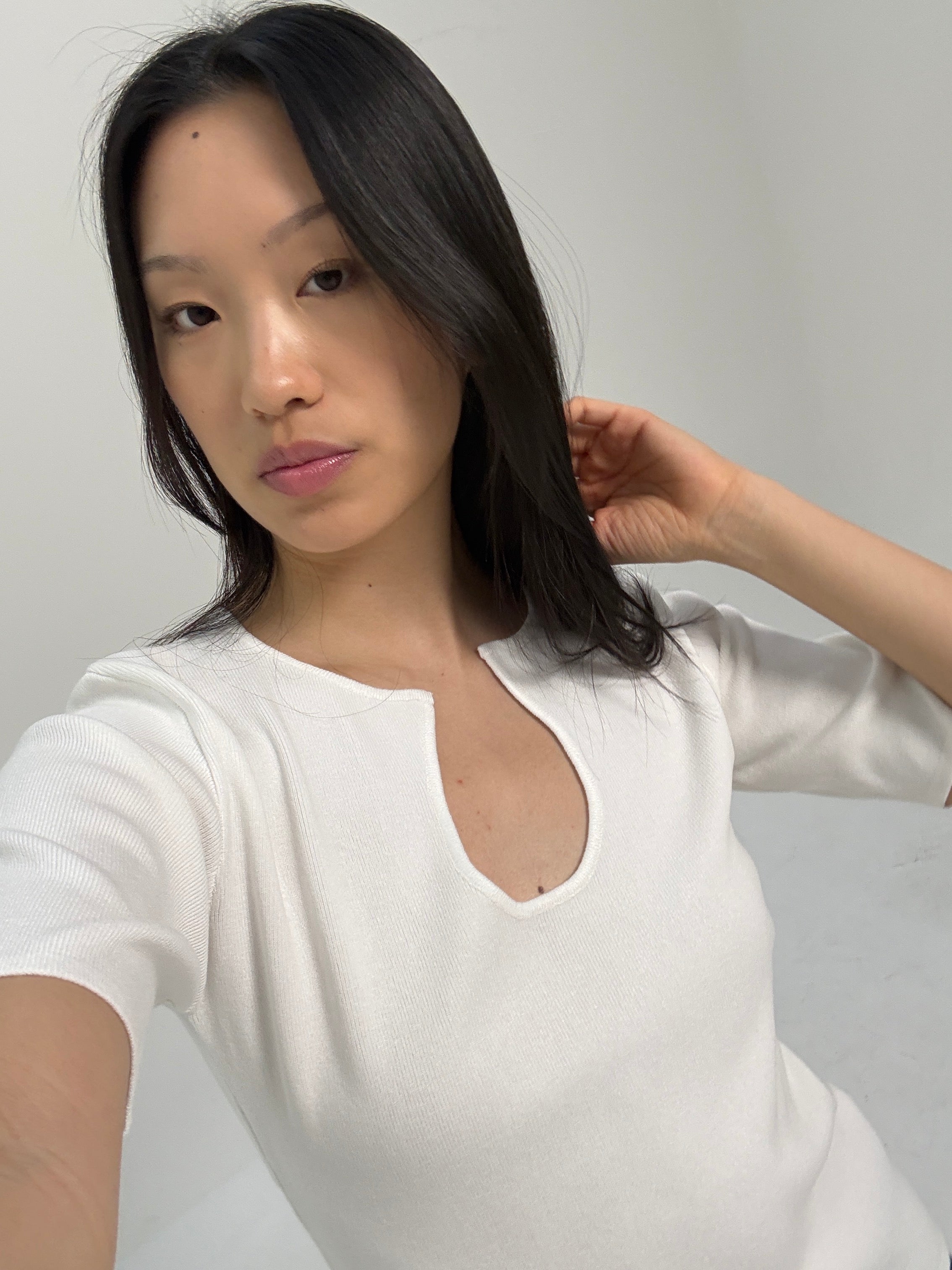 Knitted U Neck Short Sleeve Top