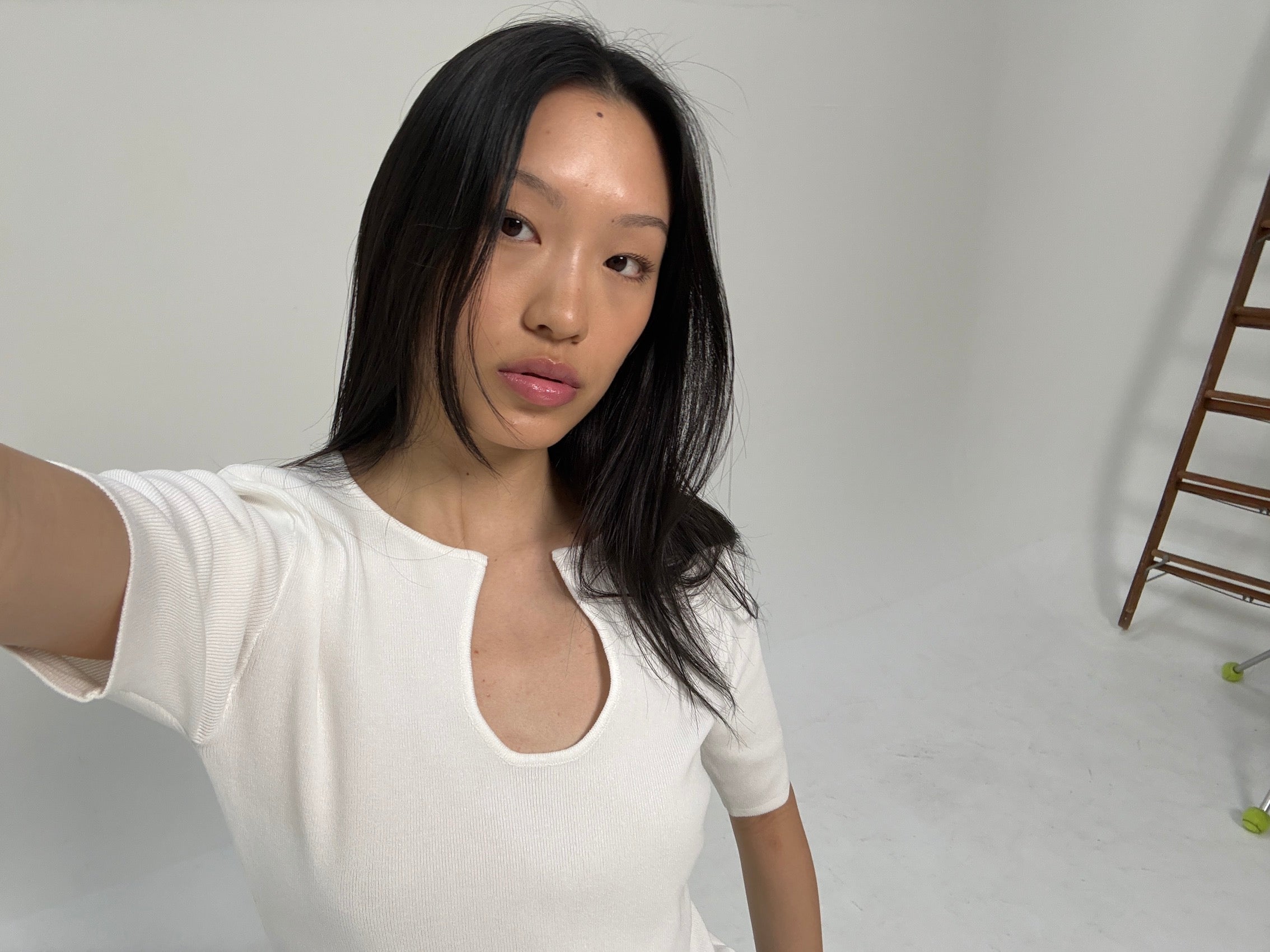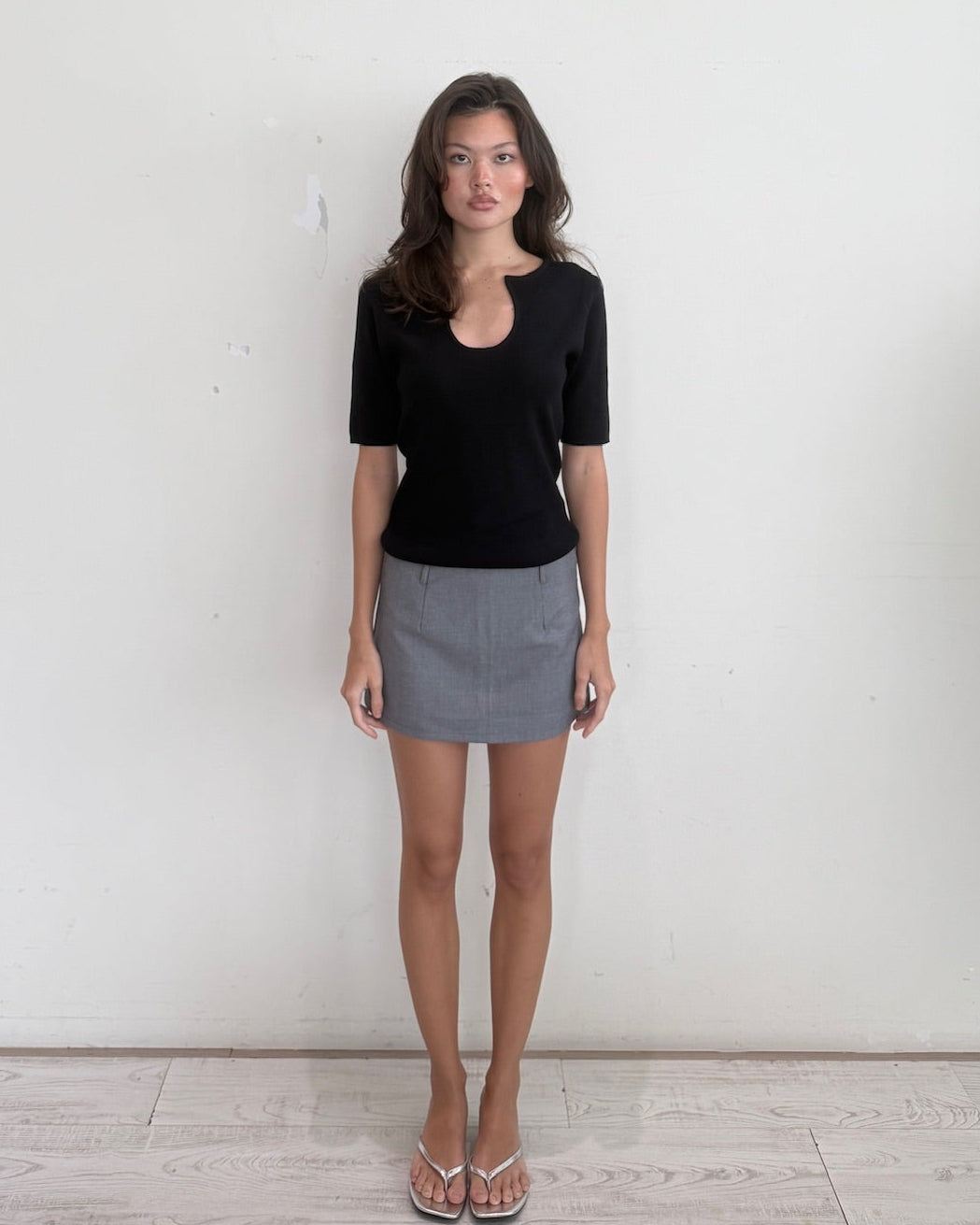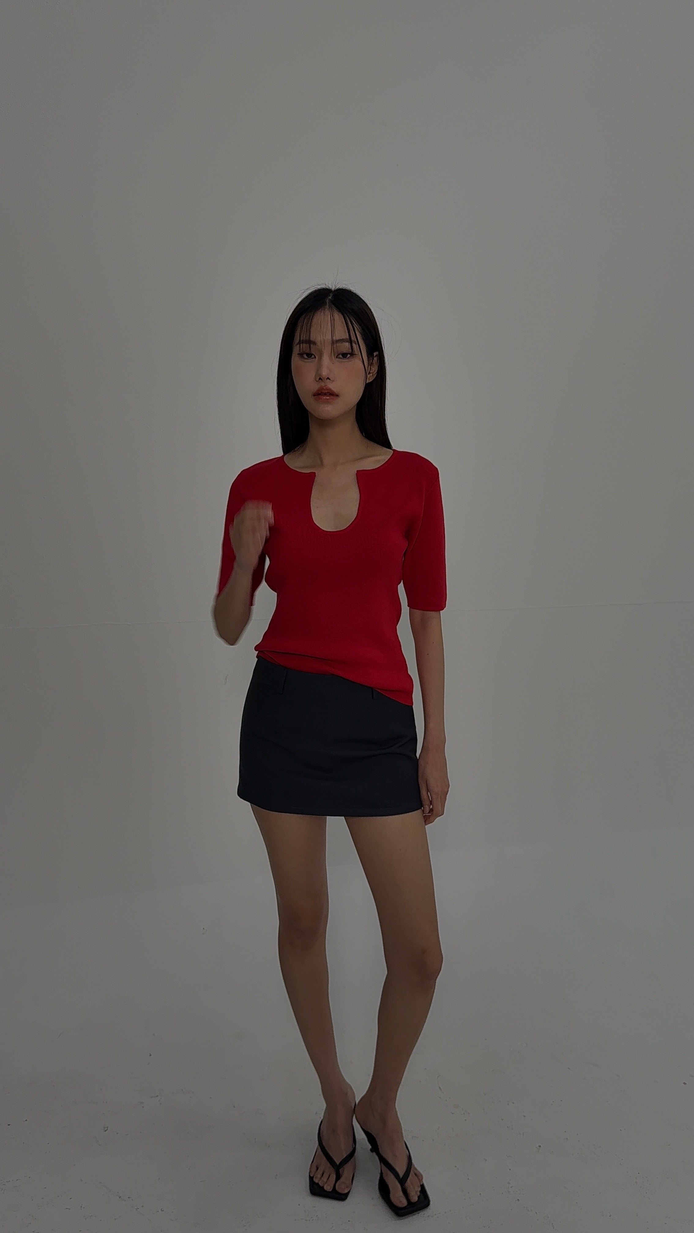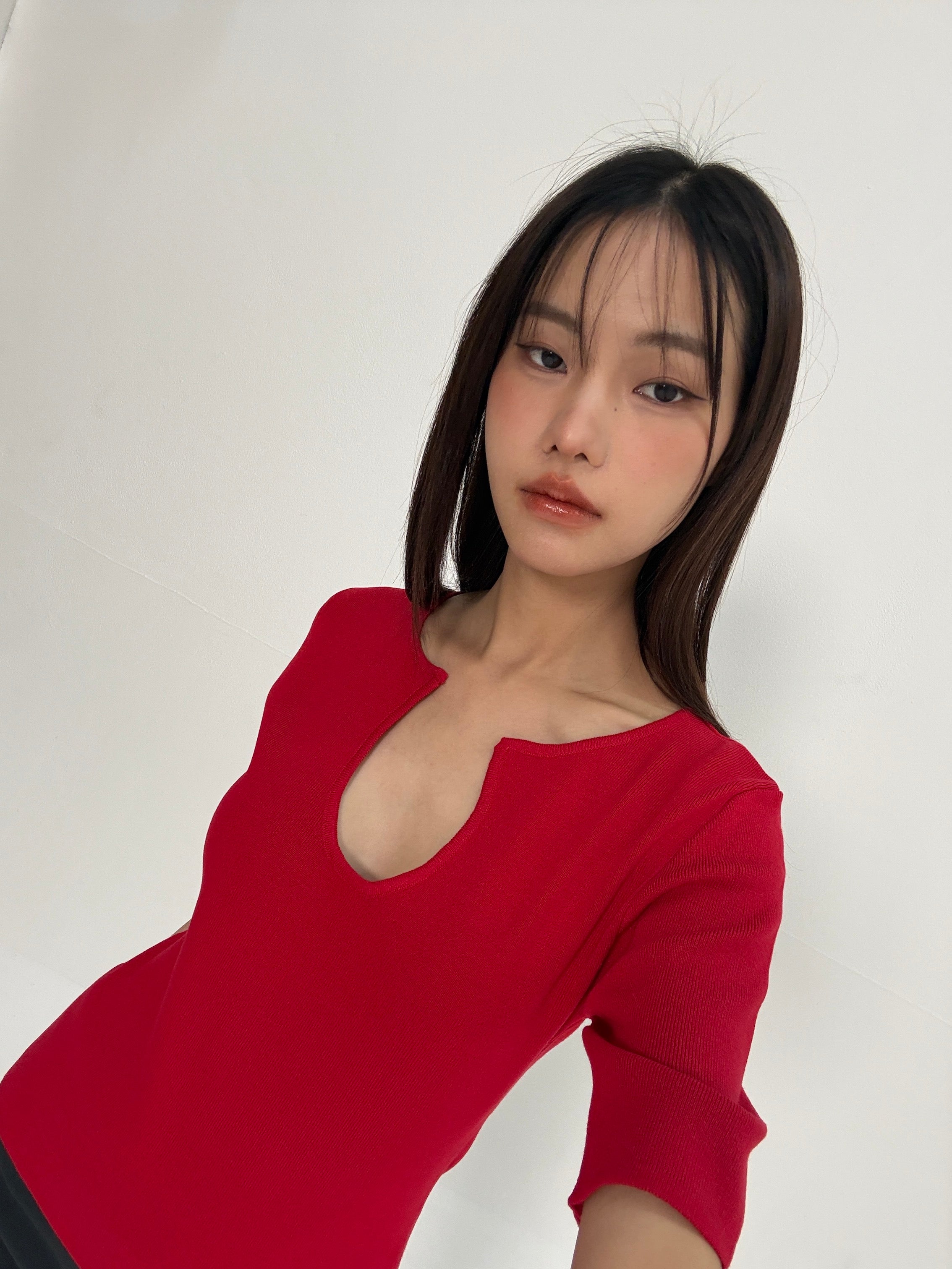Knitted U Neck Short Sleeve Top